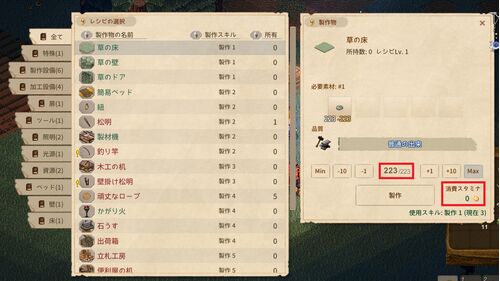 バージョン 知っているとちょっと役立つかもしれない金策を紹介。作業台にて作れる「草の床」はスタミナ消費0で作れるにもかかわらず1つ3オレンで売却できる。(草1つがコスト0で3オレンに変わる) ロイテルからレシピを購入できる床工房にて作れる「土の床…